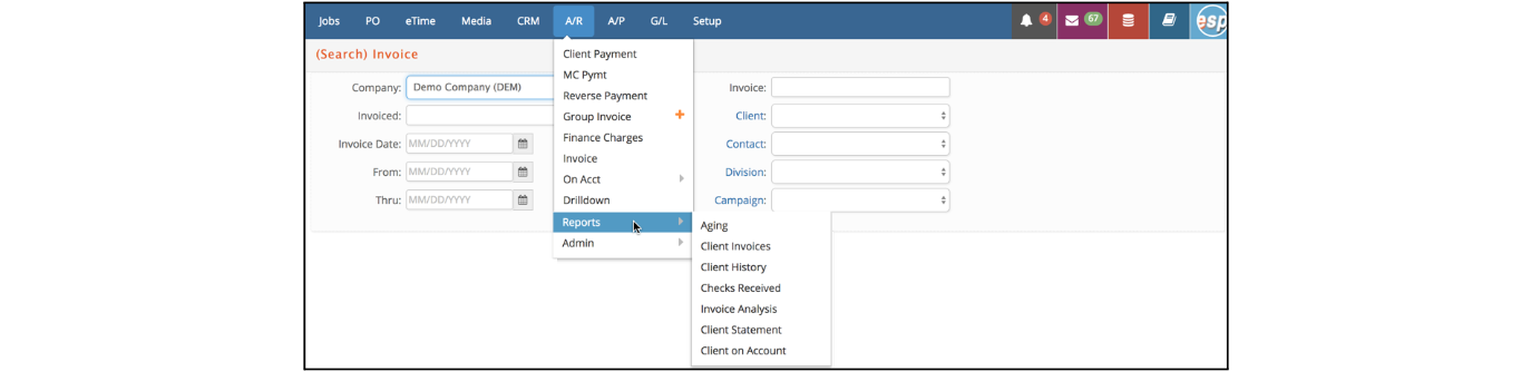 In addition, there is an extensive selection of reports that allow you to review your AR aging, generate client statements, and review client history, checks received, client invoices and invoice analysis.