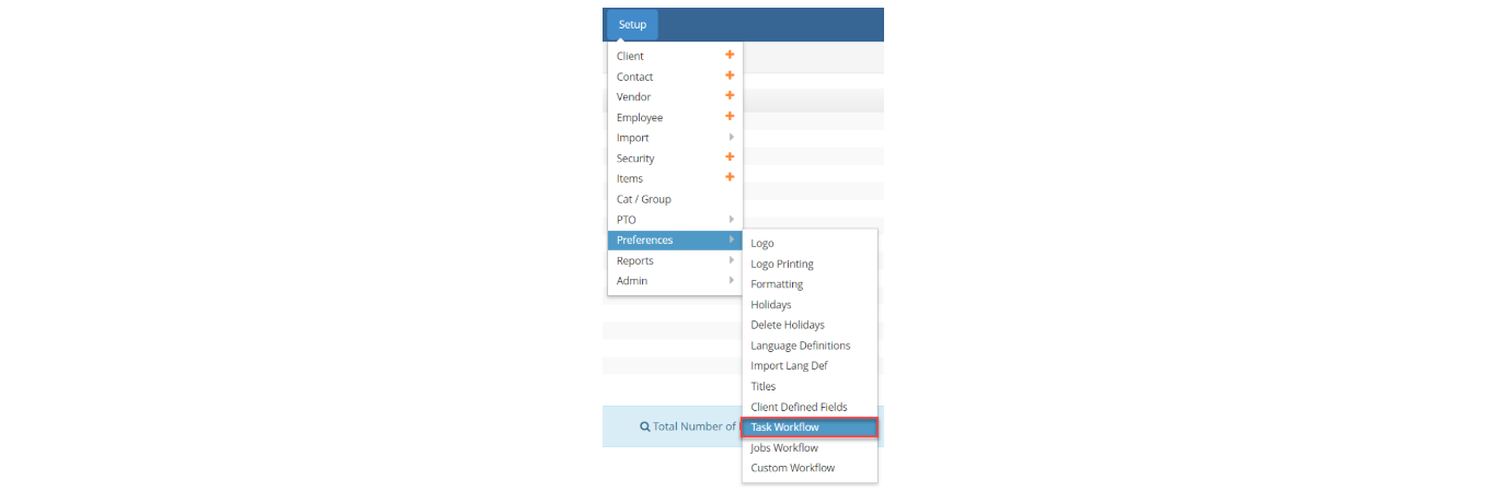 - First you need to set up a task workflow by project type. Go to Setup > Preferences > Task Workflow: