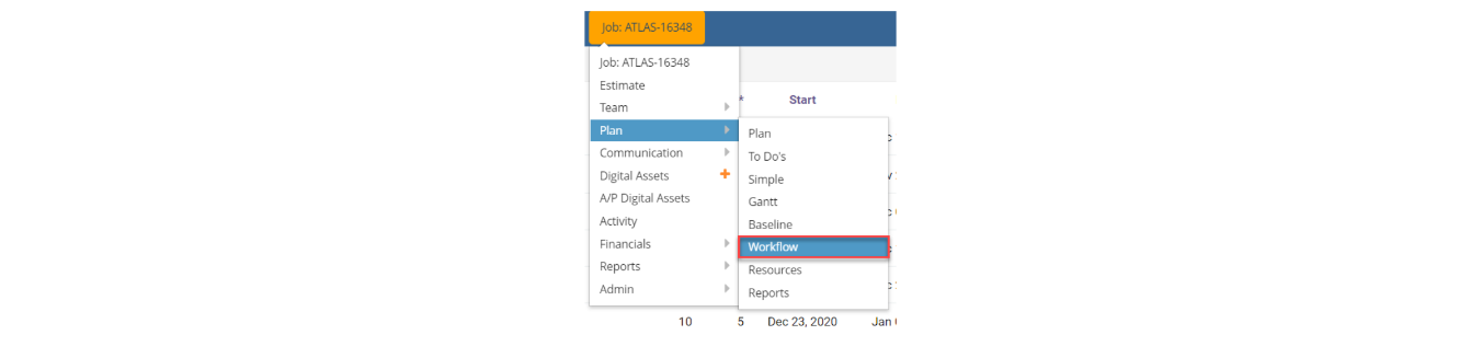 - You can assign one Task Workflow per project. In order to do this, go to the Job # > Plan > Workflow:
