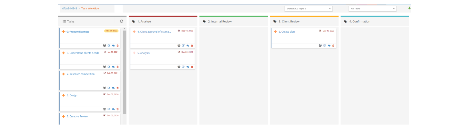 - You can see which tasks are in what workflow step to better track progress of your plan: