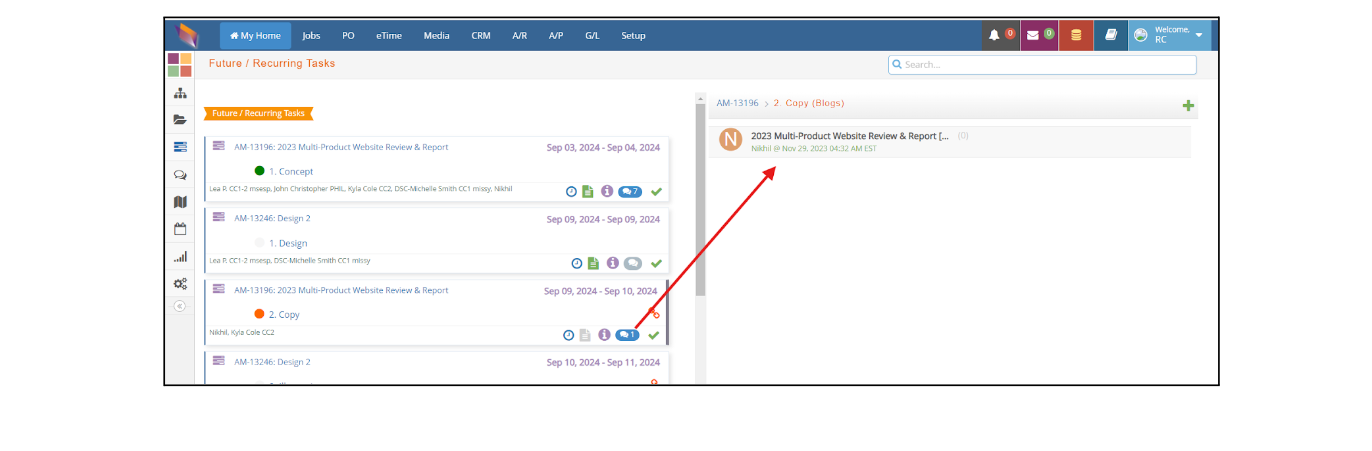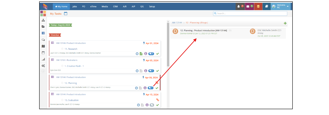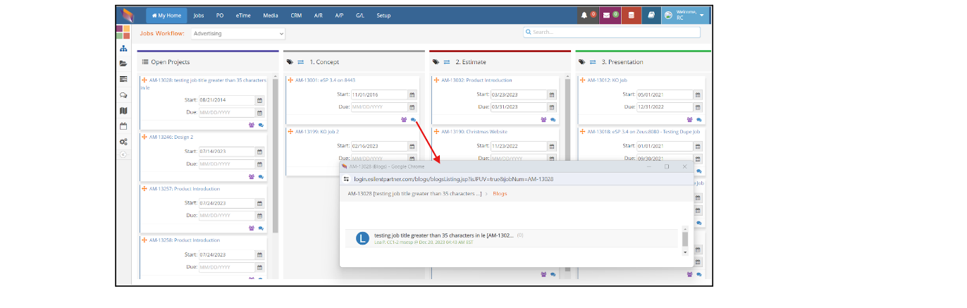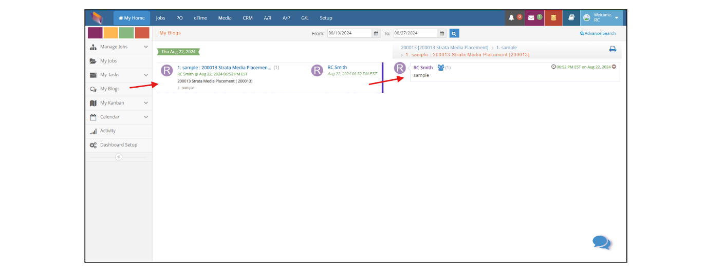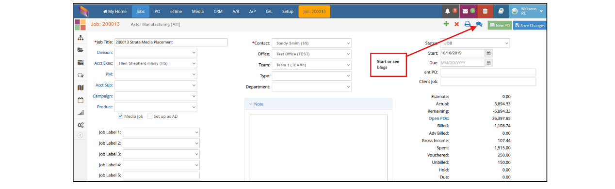 Access to Blogs can also be found in Job estimates, Team, Custom Forms and Creative Briefs and Job Invoices among others