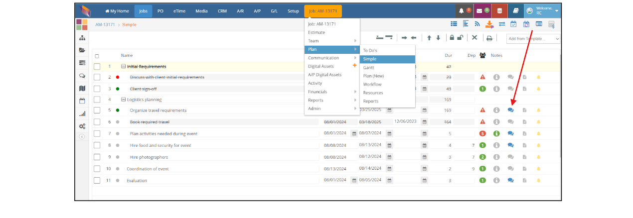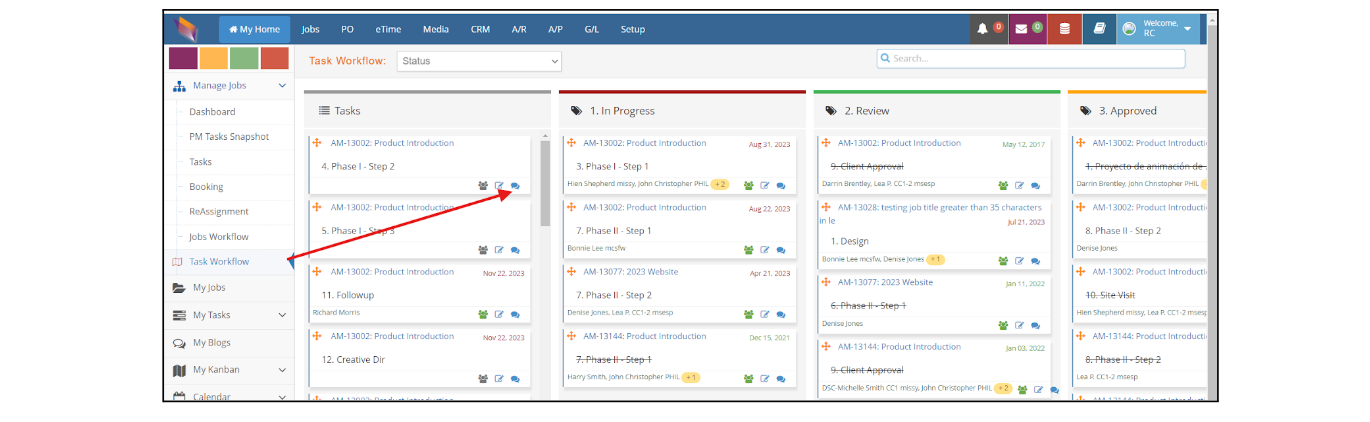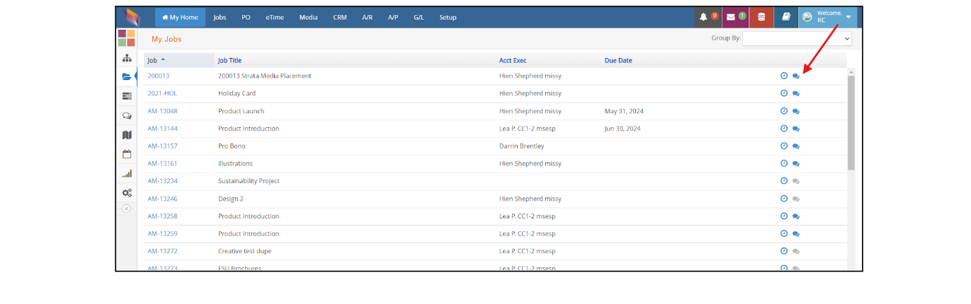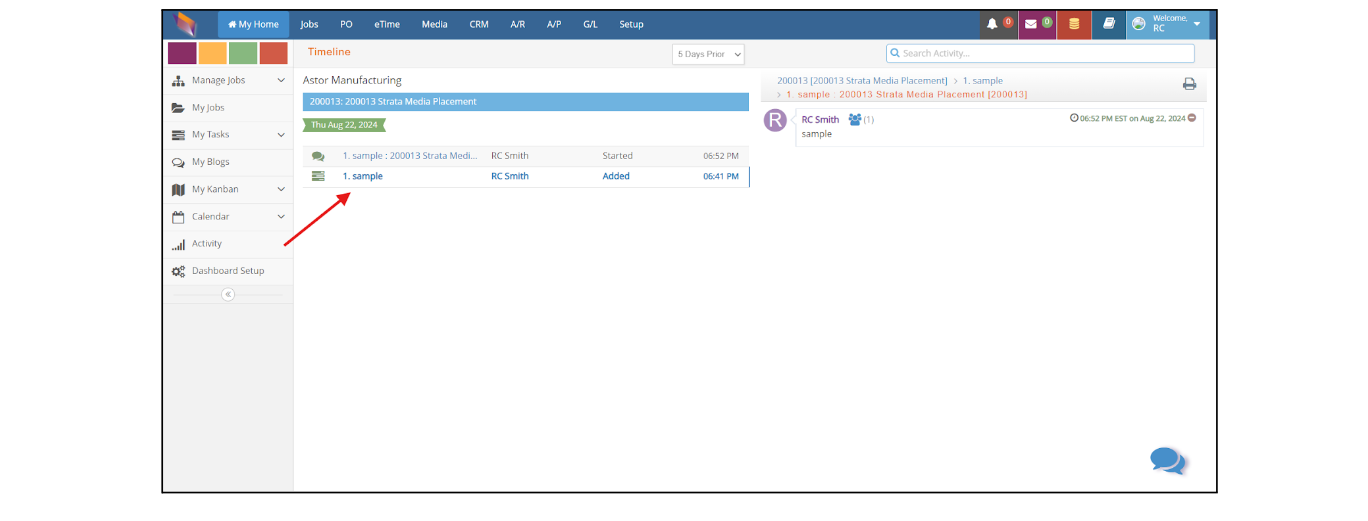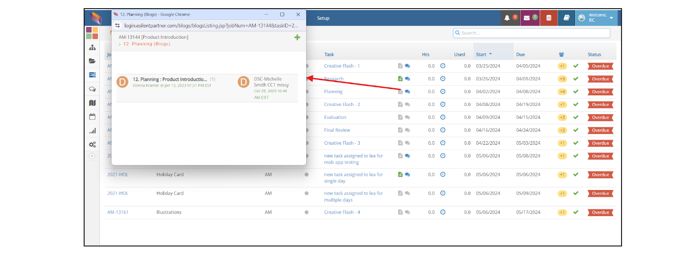 Access to Blogs can also be found in Job estimates, Team, Custom Forms and Creative Briefs and Job Invoices among others