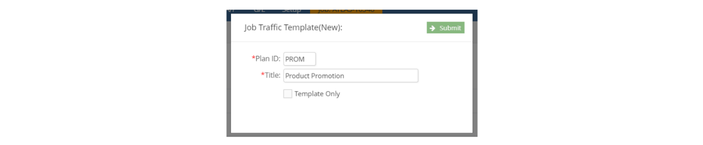 - A pop-up window will display where you should type the Plan ID and Title for this new template you are creating. Check the box next to “Template Only” if you want this template to be used only for traffic purposes and not for estimates or job types: