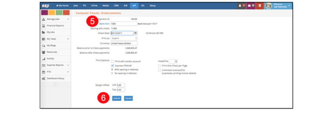 - Click Submit. For your records, e·silentpartner will print a check register in a new window.