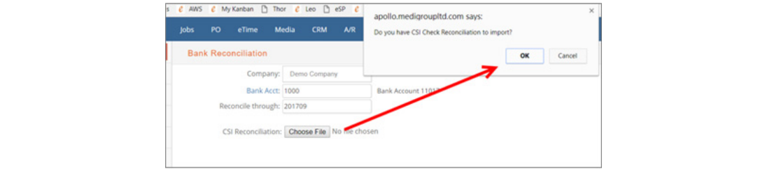 - The system will prompt you if you have a CSI file to upload. Click OK to continue.
