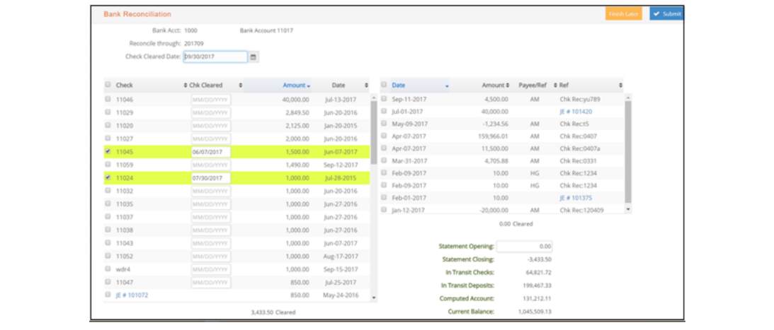 - Once uploaded, CSI-processed transactions will be automatically checked to be cleared and will show a Cleared date (as per the CSI file).