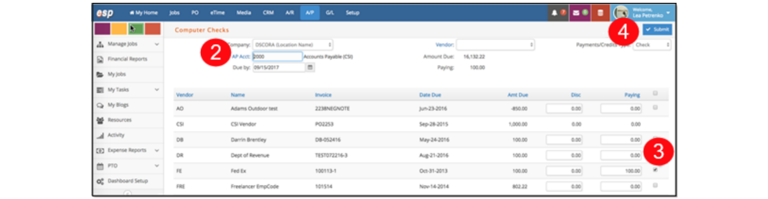 - Click to check the vendors you are paying using the checkbox(es) in the far right column.