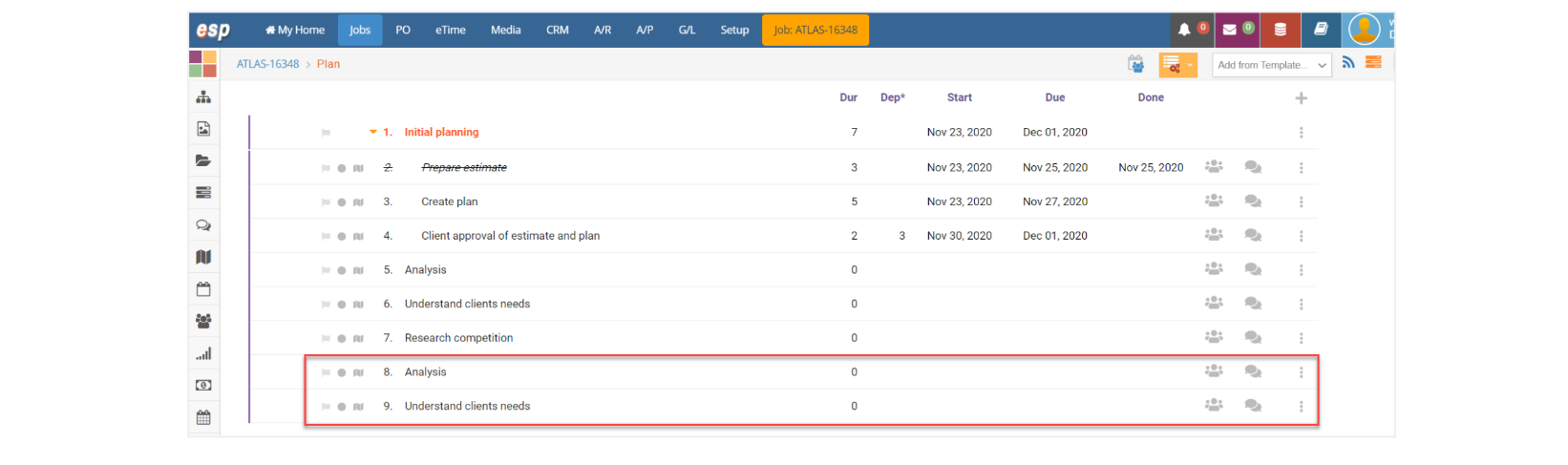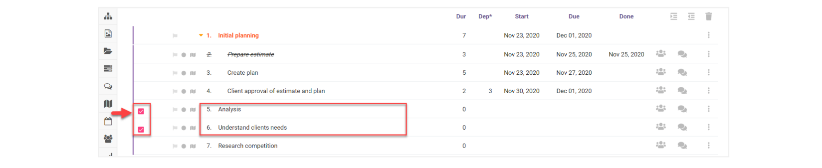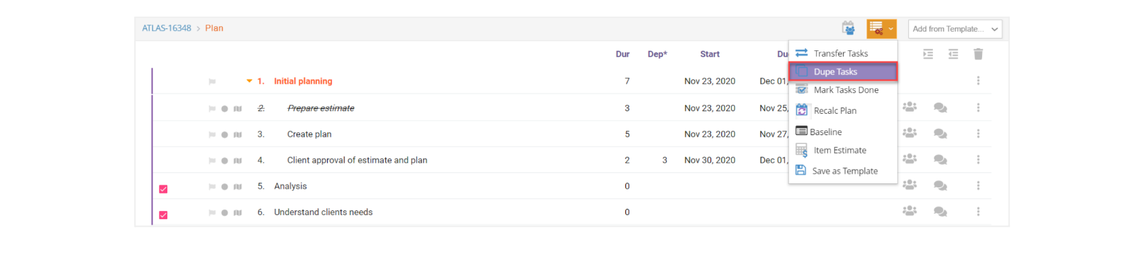 - You can see your new duplicated tasks at the end of the plan and edit them as you wish. You can change their position in the plan by dragging from the left hand side of the task:
