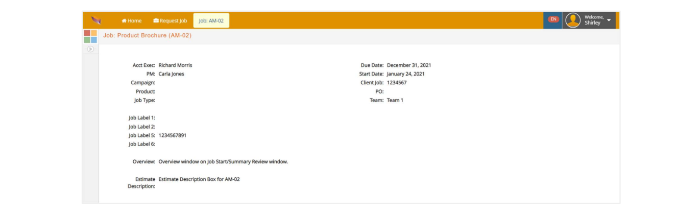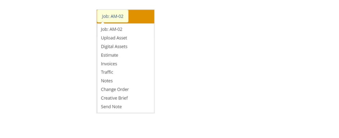 Within a particular job’s overview, your client contact will also have a menu available for that particular job where they can upload and view digital assets, review the master estimate, view invoices, traffic plan, general notes, change orders, creative briefs, and also have the option to send notes to you. All these will be available depending on the access you gave the client previously.