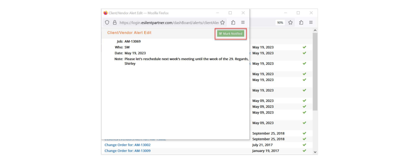 A copy of this note will also get saved in the eClients portal under Job# > Notes and in your eSP under Job# > Communication > Job Notes.