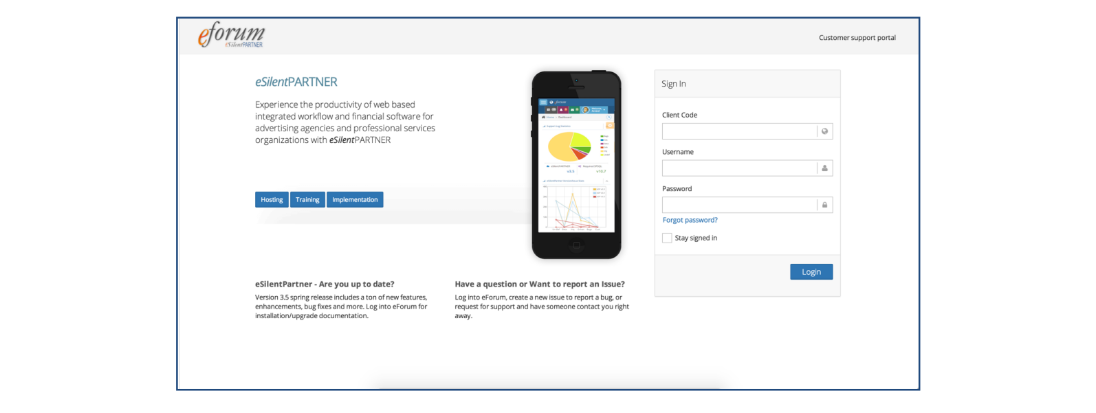 From here, to log into the eForum portal, enter your Client Code, Username, and Password.