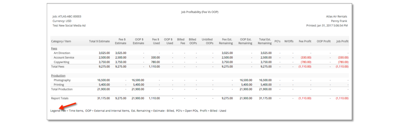 This report provides a real time chart on where you stand against the estimate. See Legend at bottom for header descriptions.