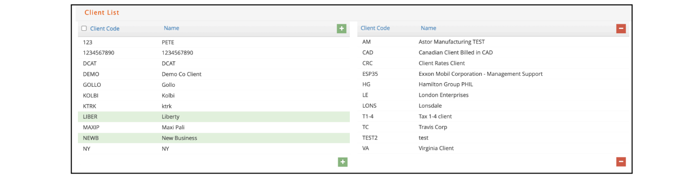- As clients are being selected, they will show highlighted in green but clicking on a client again will deselect it.