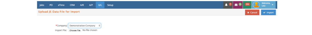 • Go menu G/L and submenu Import, Journal Entry.