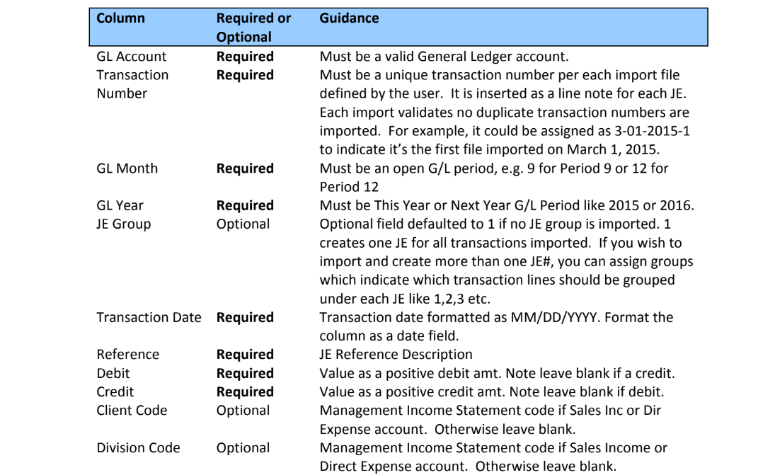 • Columns like GL Account (column A) may need to be formatted as Format Cells>Text.