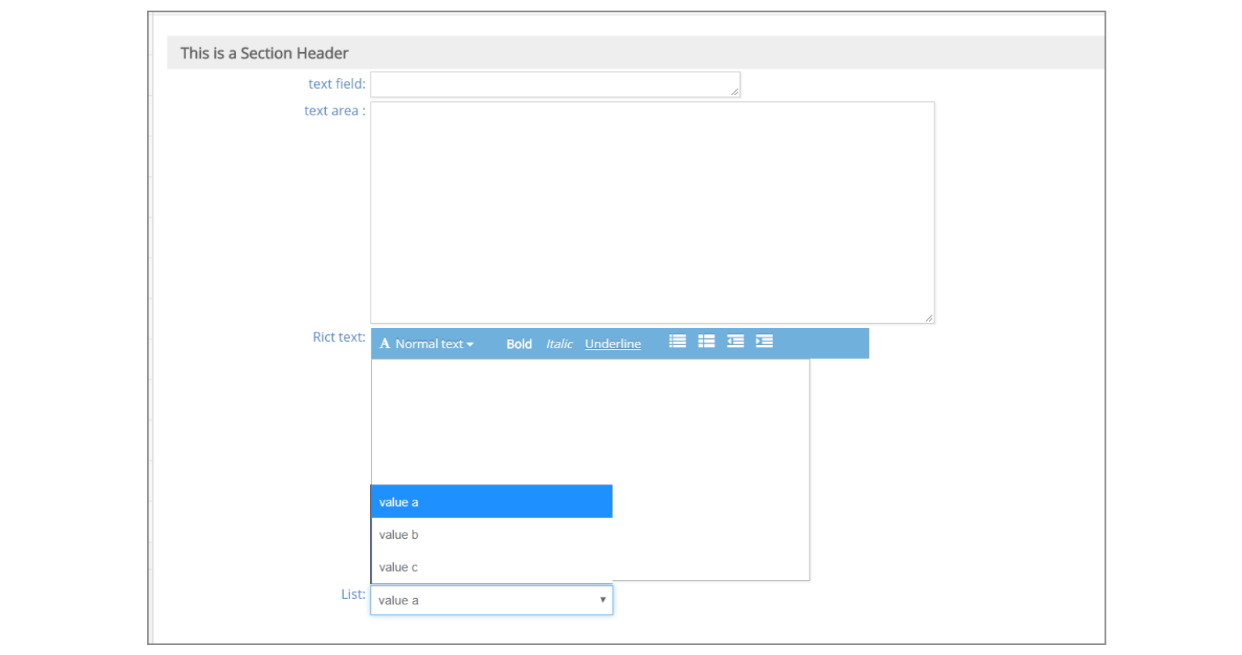 - Rich Text: Rich text field.