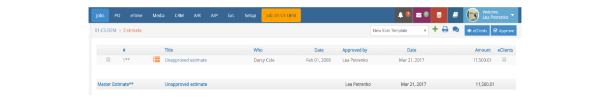 Please, check our Job Estimates manual for further information on how to create, review and edit Job Estimates.