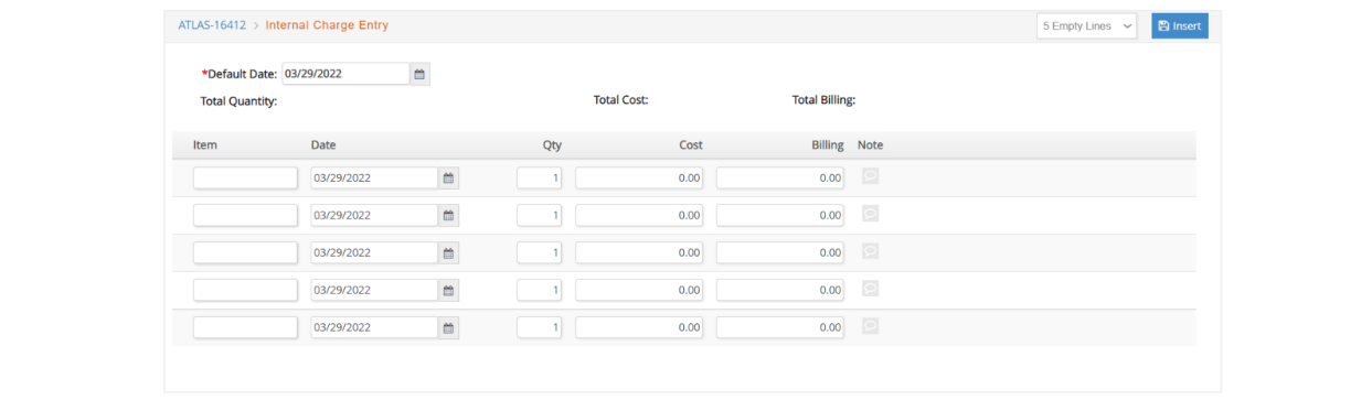 Note: You may change any of the charges up to the point where you click Insert. However, once these charges are saved, you can only change these entries by deleting the specific charge and reentering the entry, as it should have been entered.