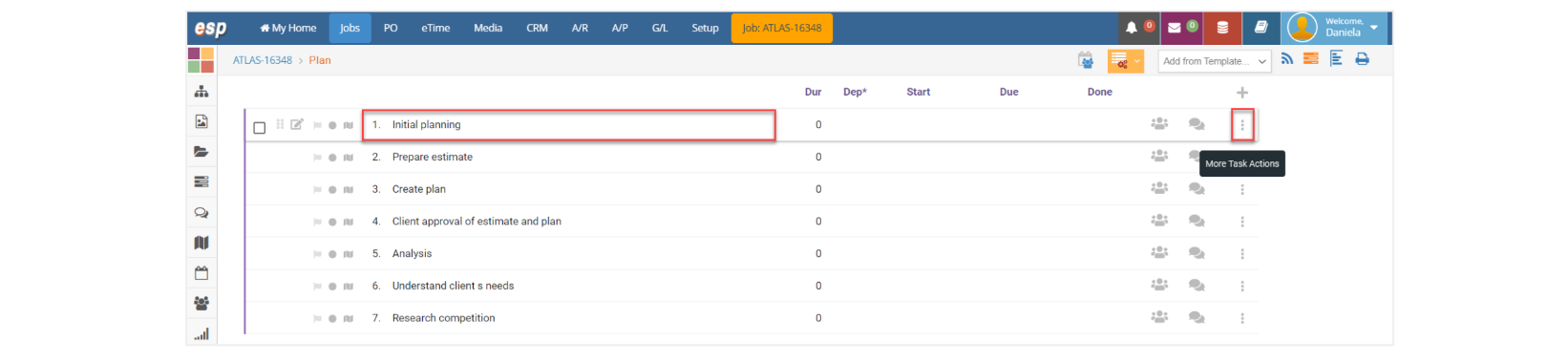 - On the right hand side of the task that you want to make a milestone, click on the “More Task Actions” icon