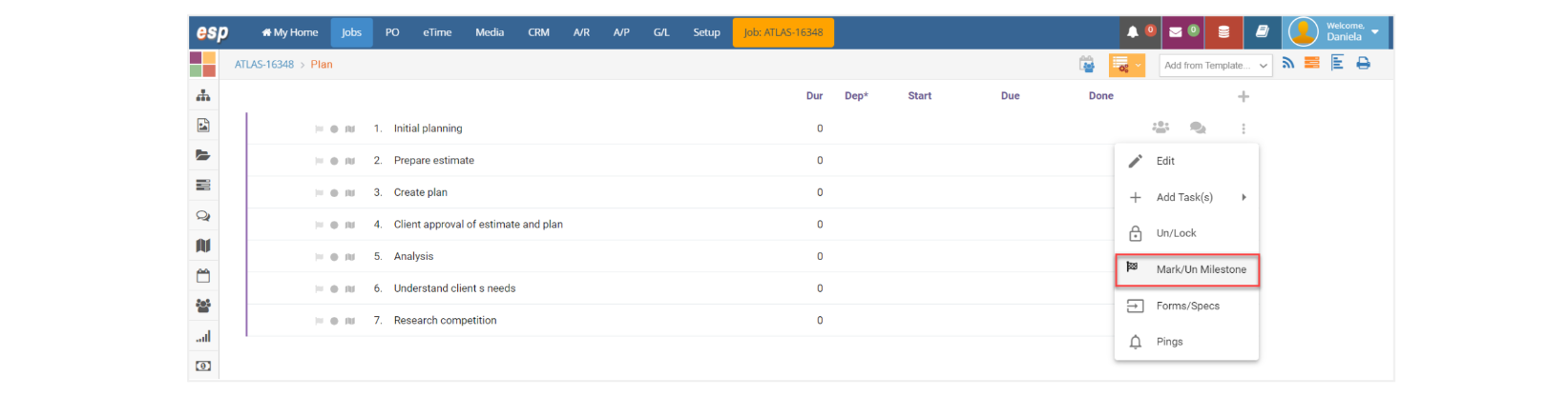 - Select the option “Mark/Un Milestone” from the menu displayed: