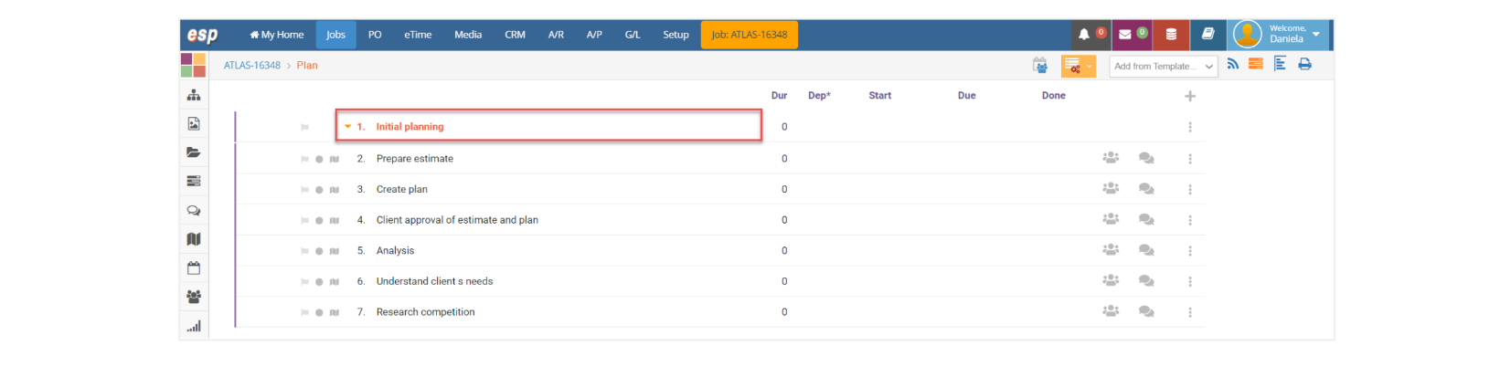 - As you can see, the task is now orange and has an orange triangle to the left, that you can click to hide or show tasks within the milestone: