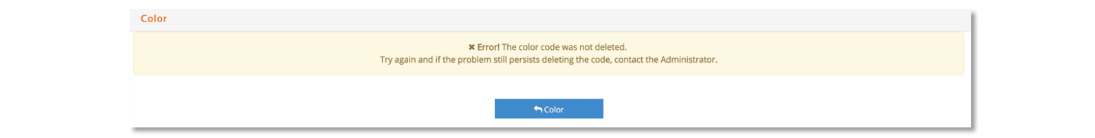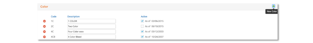 From the main Color window, should a Color code need to be deleted, click on the red icon