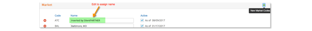 When importing orders from Strata, market codes are automatically inserted in e·silentpartner for any imported codes that do not already exist. The market names should subsequently be edited to assign the desired names.