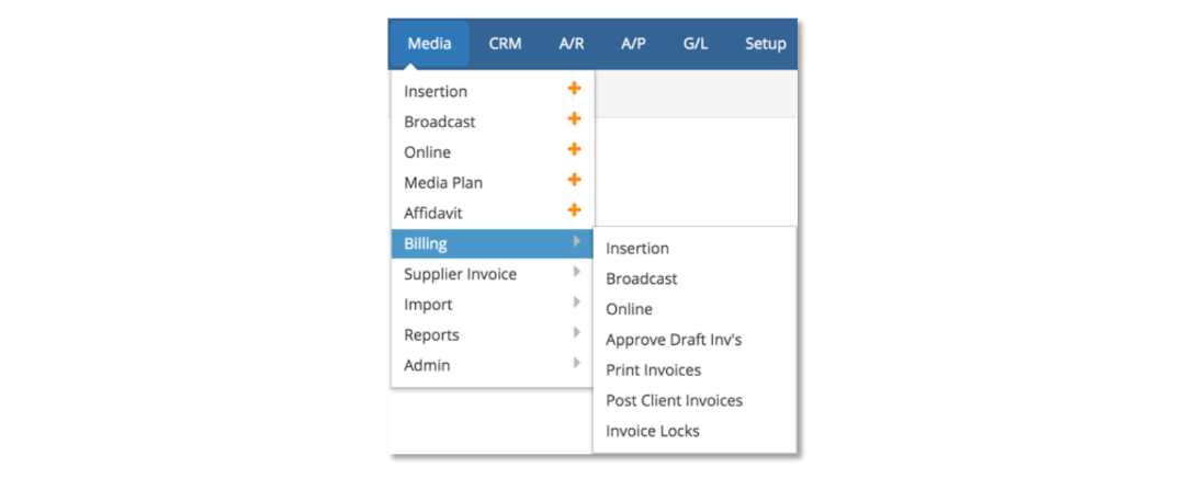 - Bill media, print and post the media client invoices. This will be reviewed in this User Guide.