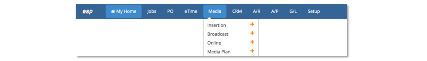 To create a new media order, click the orange plus sign next to the desired media order. You will need to have security rights to add or edit Media.