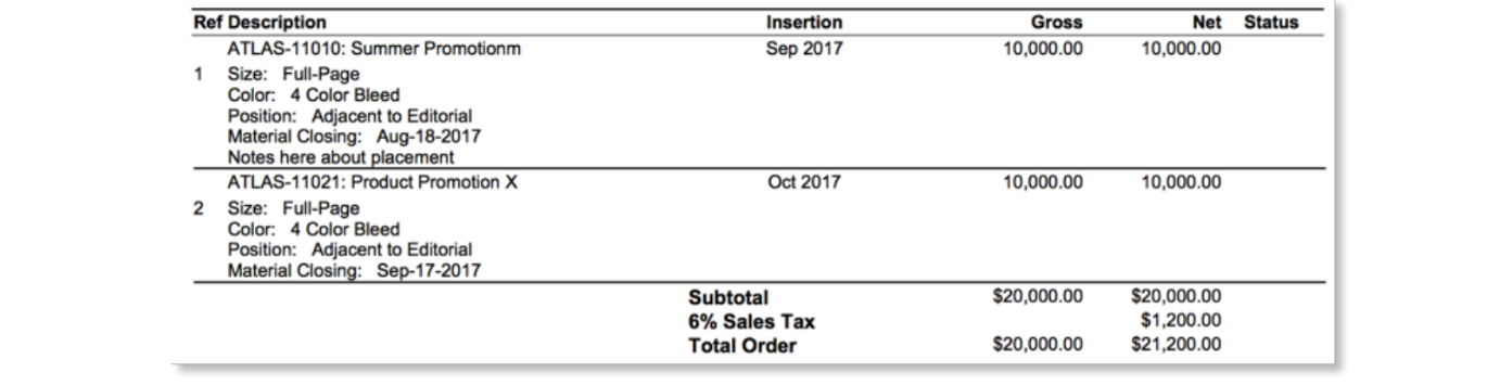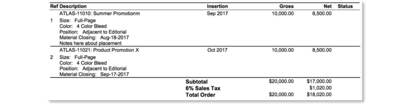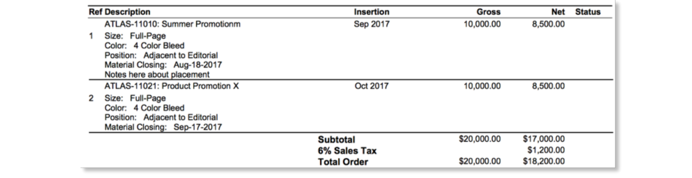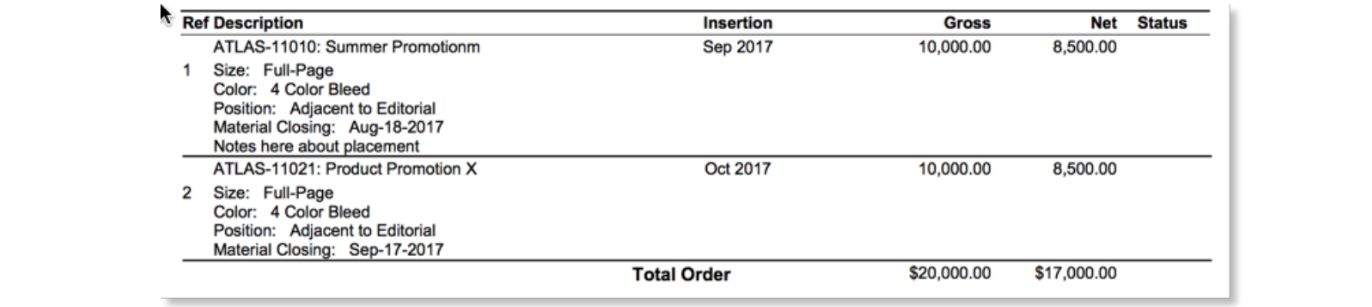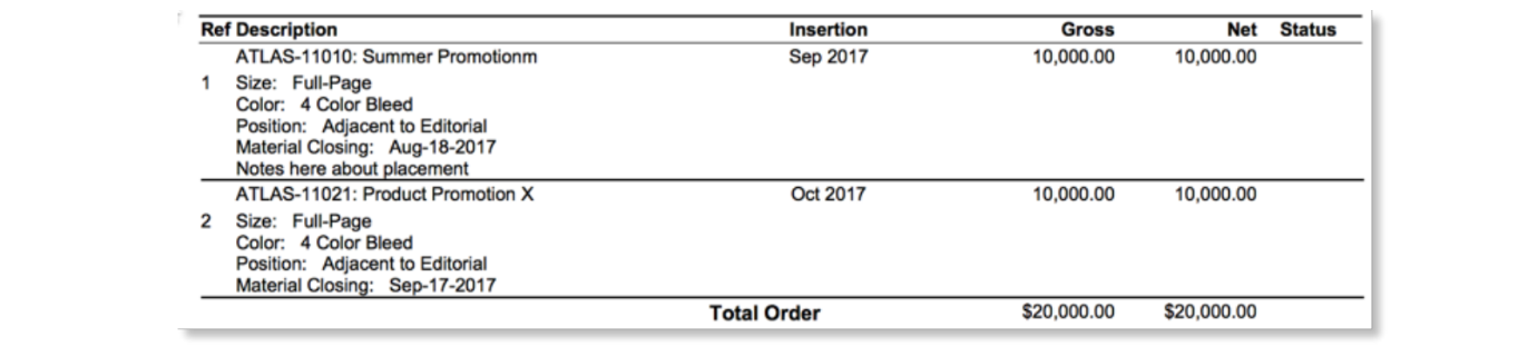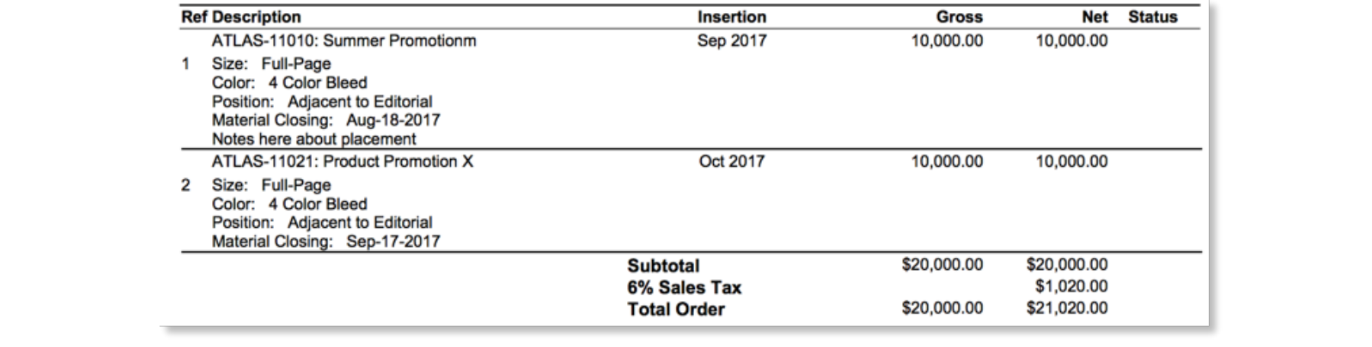 - Online Order Details: Optionally include Placement, To date, Size, Type, Quantity, CPM (cost per 1,000).
