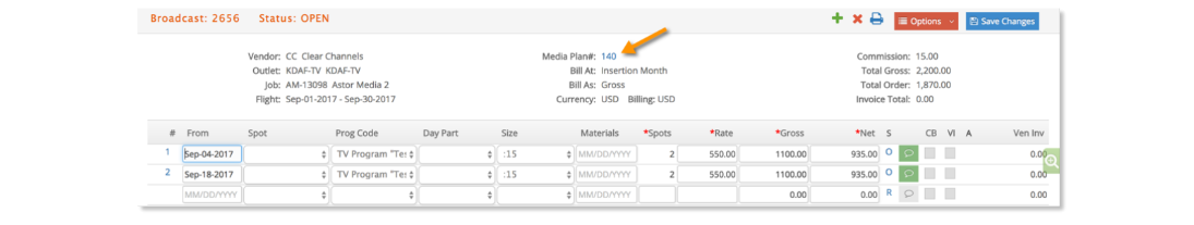 When viewing the media order, you can click on the blue Media Plan # to return to viewing the media plan.