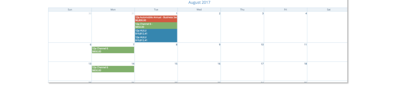 This provides a calendar display of media for a specified client and optionally campaign and product for a specified month.