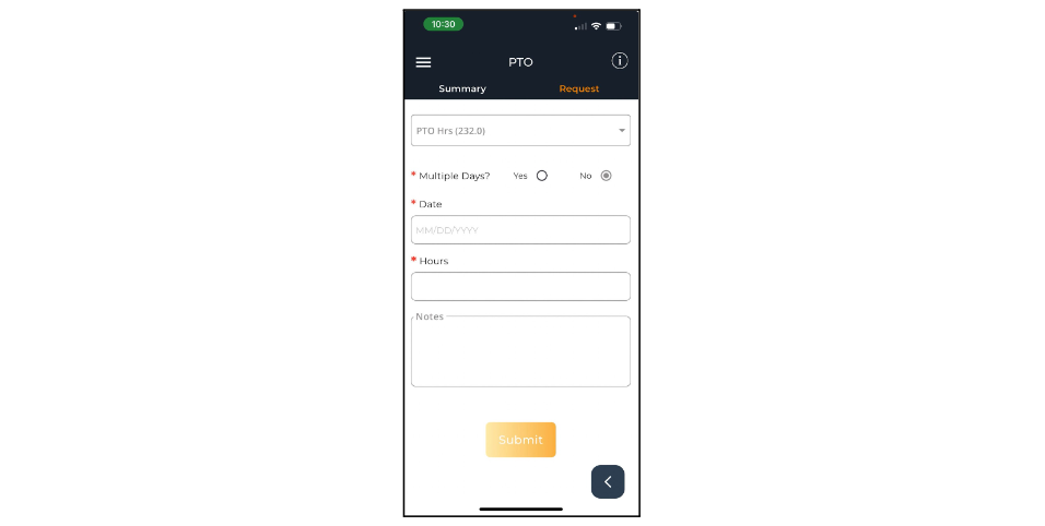 Tap this option to begin a PTO request.