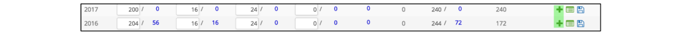 There may be instances where time off must be recorded and the employee is not present, for example periods of sick time. The PTO Approver may do so by navigating to the employee record and click the green plus sign, +, on the row that will be updated.
