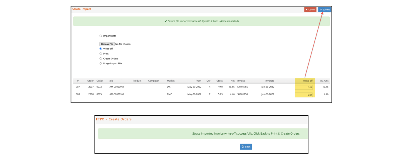 Simply key the net amount to write-off for each invoice, click ‘Submit’ and then