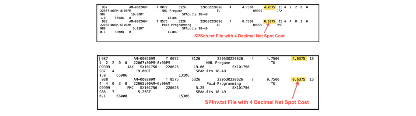 - Broadcast Imports With 4 Decimal Net Spot Costs: Modifications are added to