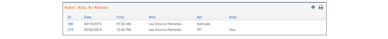 - Click the blue ID to view the note in detail.