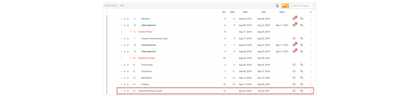 - You will see that the task transferred has been placed at the end of the plan of the job selected: